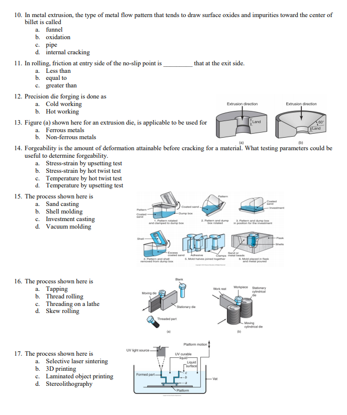 Solved 1. Which of the following casting processes are
